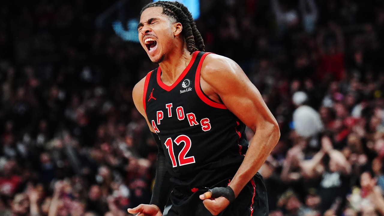 First, a strong down-screen to free up Jamison Battle for his first of four threes. Then, after connecting with RJ Barrett for a pair of layups, Murray-Boyles collected a missed Toronto free throw and dished it to Battle for his third triple. His second offensive rebound of the frame came on the very next possession as he dropped in a putback for his final basket.