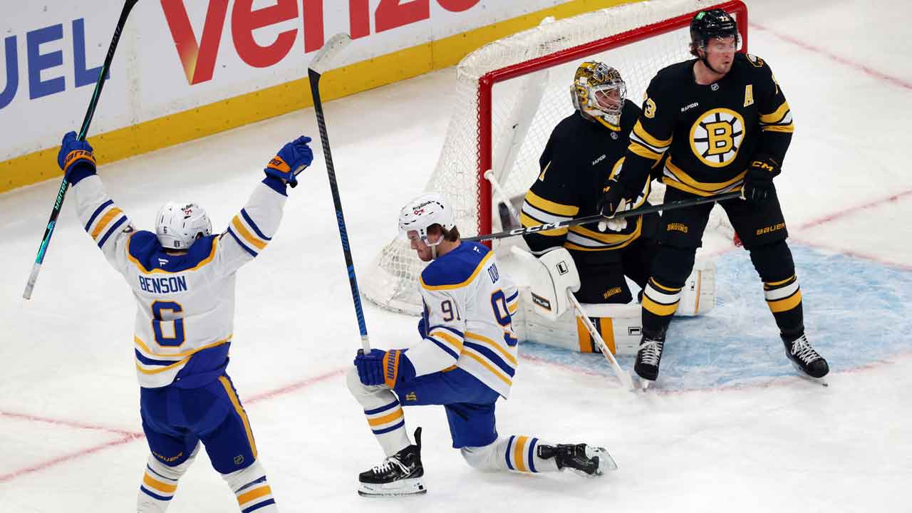 Peyton Krebs, Zach Benson and Bowen Byram also scored to help Buffalo open a 4-0 lead against a Boston team that needed a win at home to avoid moving to the brink of elimination. Beck Malenstyn and Alex Tuch scored 84 seconds apart in the third period to make it 6-0 and chase Bruins goalie Jeremy Swayman.